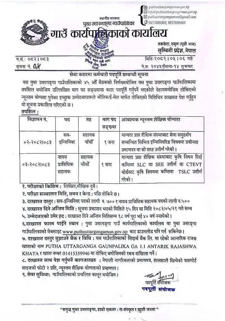सेवा करारमा कर्मचारी पदपूर्ति सम्बन्धी सूचना !!! |