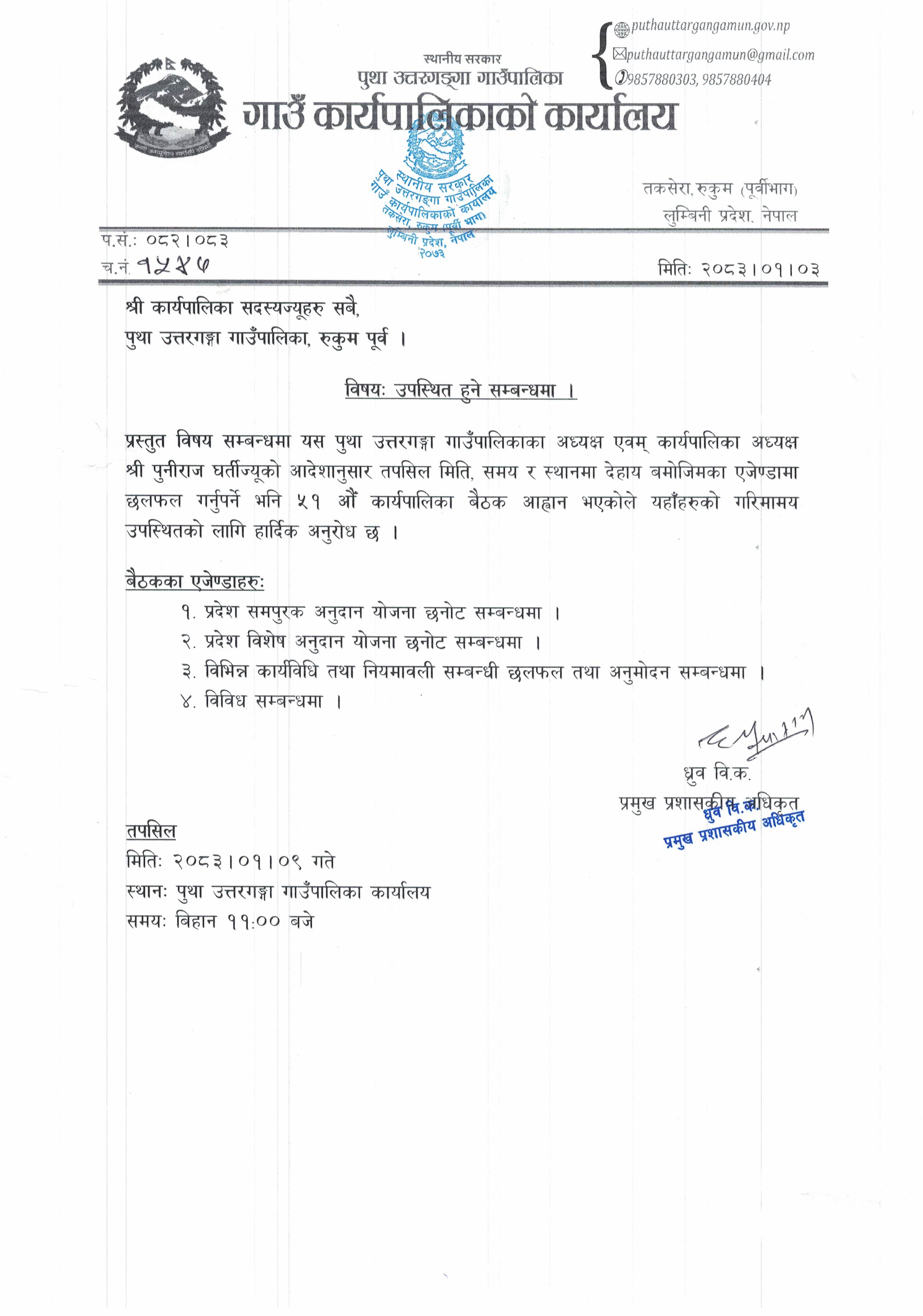 कार्यपालिकाको बैठकमा उपस्थित हुने सम्बन्धमा । |