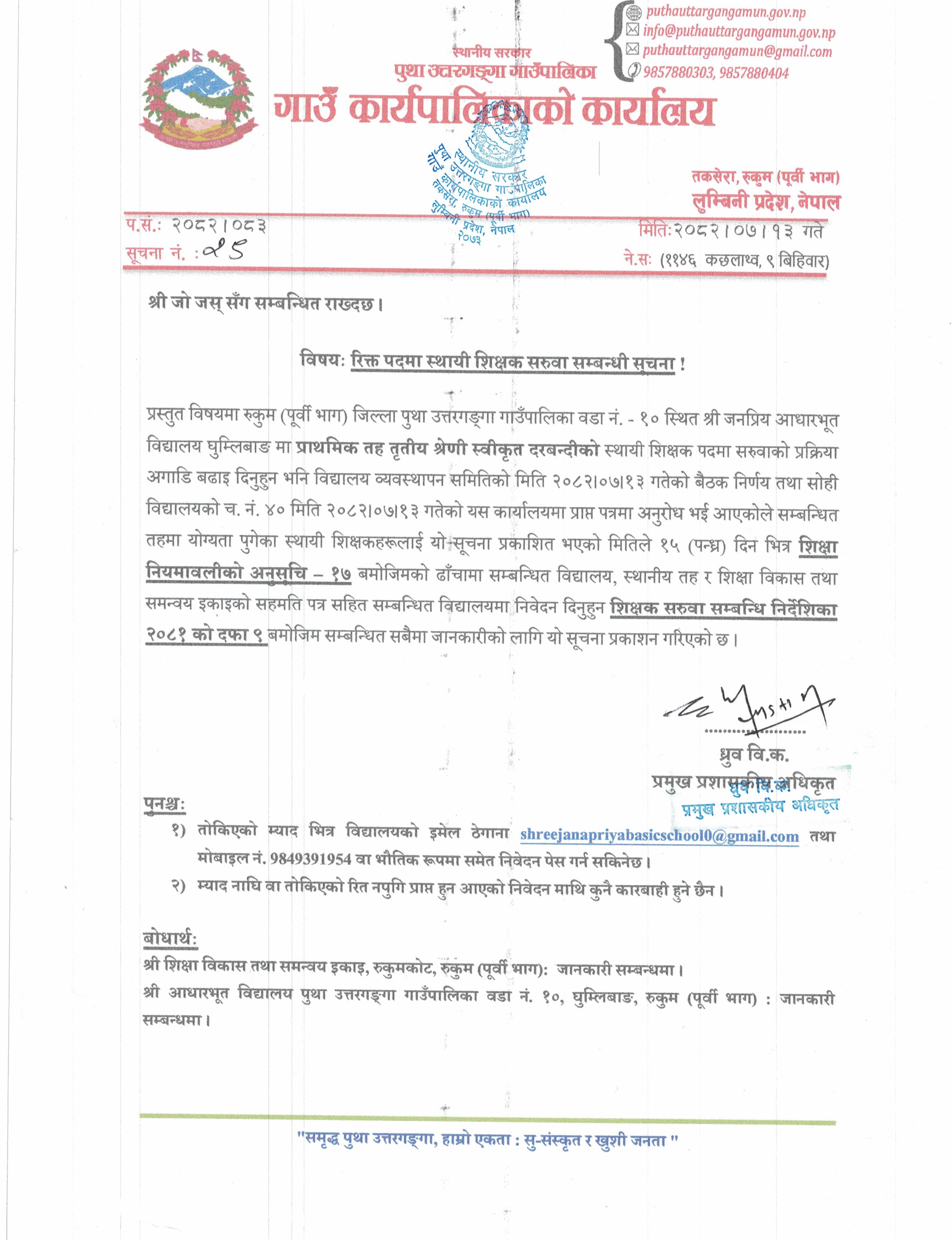 रिक्त पदमा स्थायी शिक्षक सरुवा सम्बन्धी सूचना । |